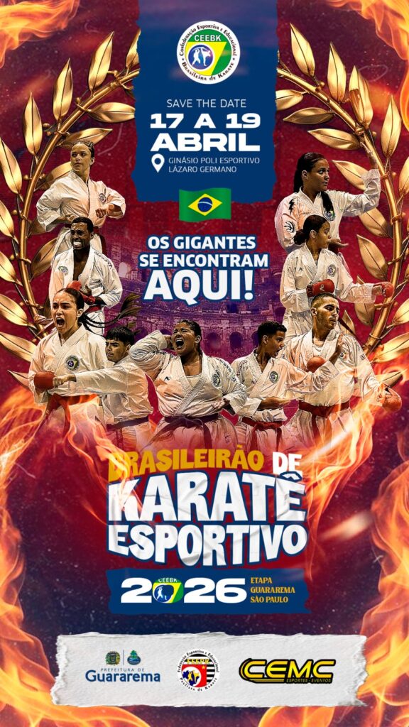 Nós da Confederação Esportiva e Educacional Brasileira de Karate (CEEBK) convidamos todos os praticantes de karate, bem como seus familiares e simpatizantes, para participarem da 1ª Etapa do BRASILEIRÃO DE KARATE ESPORTIVO 2026, que será realizada de 17 a 19 de Abril de 2026 no Ginásio Poli esportivo “Lázaro Germano” sito Rua José Ramires nº 160- bairro Ipiranga- Guararema SP.
